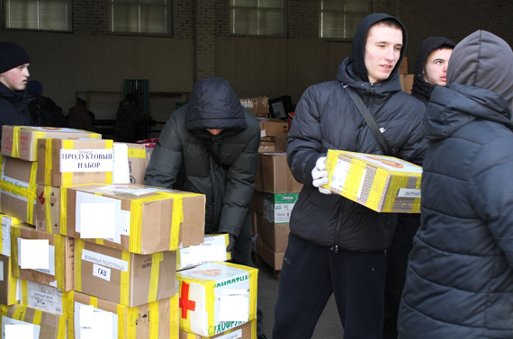 В сборе этой партии гуманитарного груза приняли участие органы государственной власти, сотрудники республиканских учреждений, благотворительные объединения, профсоюзы, предприниматели и неравнодушные жители республики. Для военнослужащих были отправлены транспортное средство «Москвич», большие колеса для автомобиля «Урал», запчасти для автотехники, тосол в бочках, строительные инструменты, медикаменты, постельное белье, окопные свечи, маскировочные сети, вода, кофе, чай, продукты питания (тушенка, супы, каши, лапша быстрого приготовления, сало, сухари, солонина, варенье, печенье, конфеты), тёплые вещи, средства личной гигиены и адресные посылки. Также в преддверии Дня защитника Отечества для бойцов переданы подарки. В рамках Международного дня книгодарения работники культуры направили большую посылку для юных и взрослых читателей нашего подшефного города Черовонопартизанска Луганской народной республики – около 250 книг, которые пополнят фонд городской библиотеки. Это детские энциклопедии, художественная литература, справочники, книги о музыкальной культуре хакасского народа и др. Кроме того, в посылке нотные сборники и каталоги с репродукциями картин художников, участвовавших в разные годы в пленэрах на территории нашего региона. Эти издания будут переданы в червонопартизанскую детскую школу искусств. Традиционно в погрузке принимали участие сотрудники ГКУ РХ «РИЦ по предупреждению ЧС и ликвидации их последствий» и студенты Училища олимпийского резерва. |