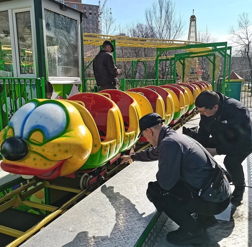 Эксперт специализированной аккредитованной организации провел техосвидетельствование аттракционов в присутствии сотрудников Гостехнадзора. Без положительного заключения эксперта эксплуатация запрещена. Кроме того, все аттракционы - от небольших каруселей до огромных колес обозрения, - предстоит зарегистрировать в Гостехнадзоре. После успешного прохождения регистрации на видном месте у входа разместят государственный регистрационный знак. Также ведется обновление внешнего вида парка. В настоящее время покрасочные работы охватывают входную арку и шахматный павильон. В ближайших планах – обновление лавочек, бордюров и ограждений. Открытие сезона аттракционов в парке «Орлёнок» намечено на 1 мая. |