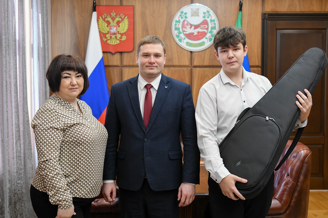 Валентин Коновалов вручил электрогитару юному жителю республикиНИА-Хакасия